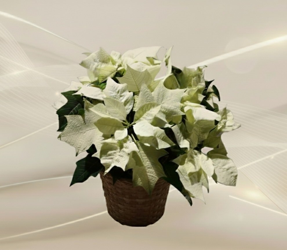 Kaunis monilatvainen joulutähti korissa. Korit vaihtelevat kaupan valikoiman mukaan.